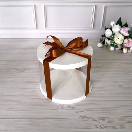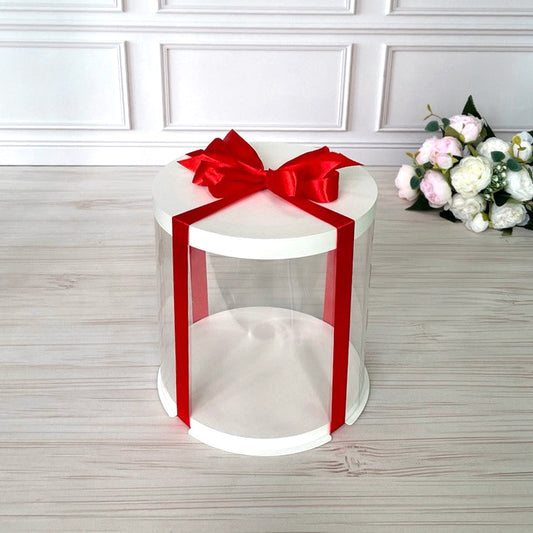 Przezroczyste okrągłe pudełko na tort 20x10 cm – Białe