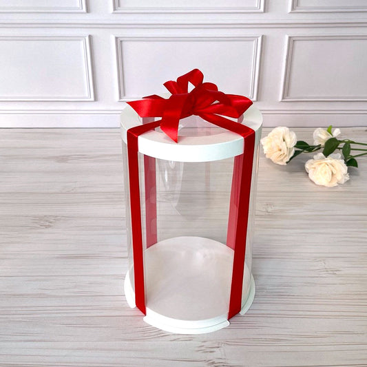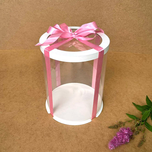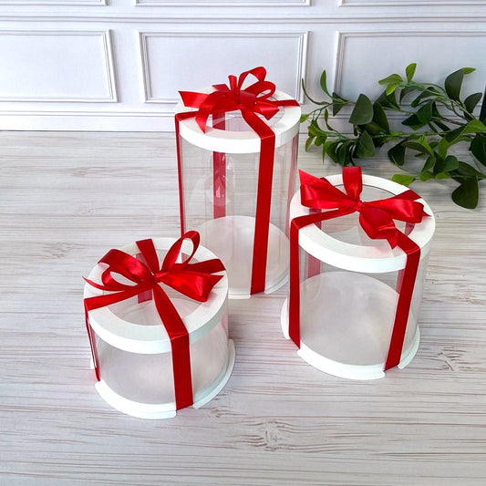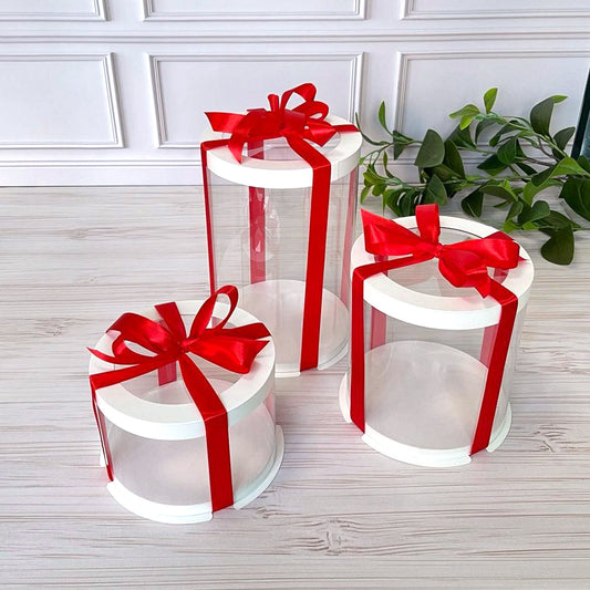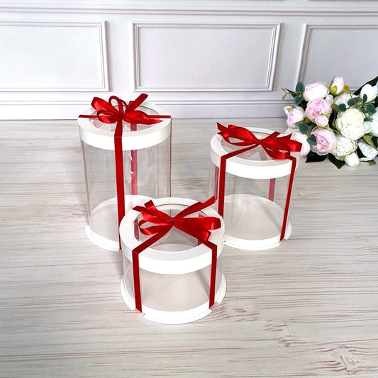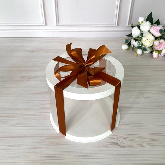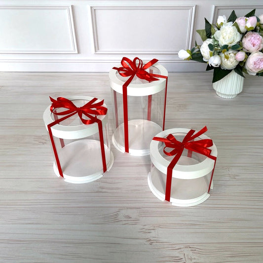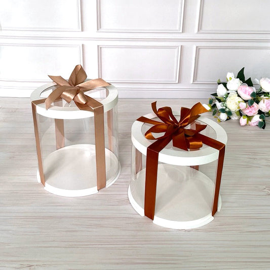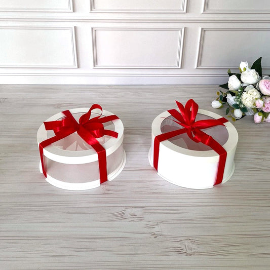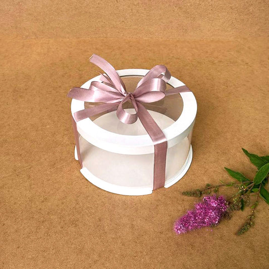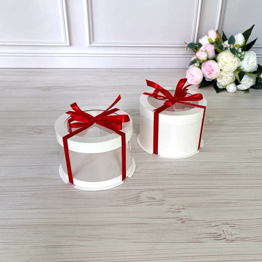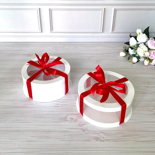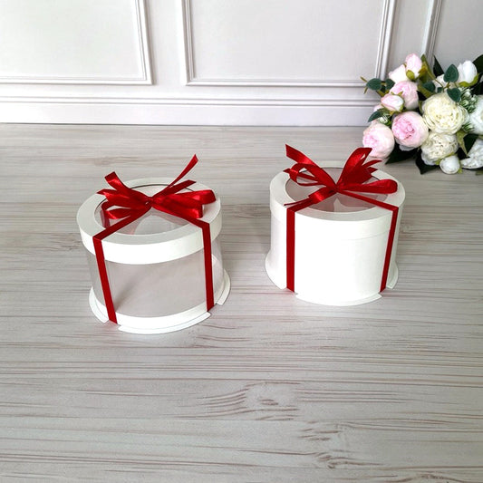Przezroczyste okrągłe pudełko na tort 12x8 cm – Białe, z okienkiem