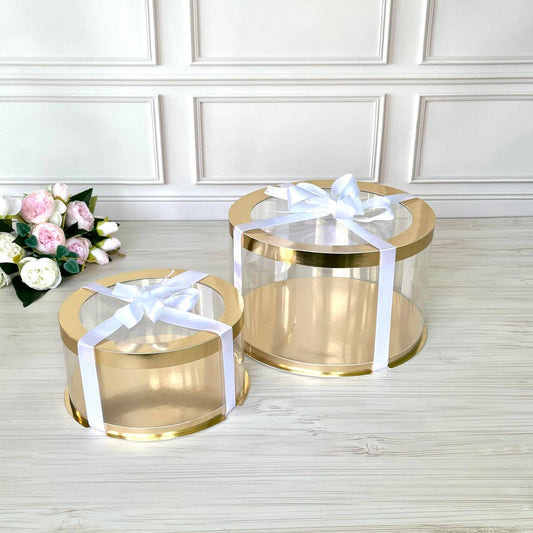 Przezroczyste okrągłe pudełko na tort 12x8 cm – Białe, z okienkiem