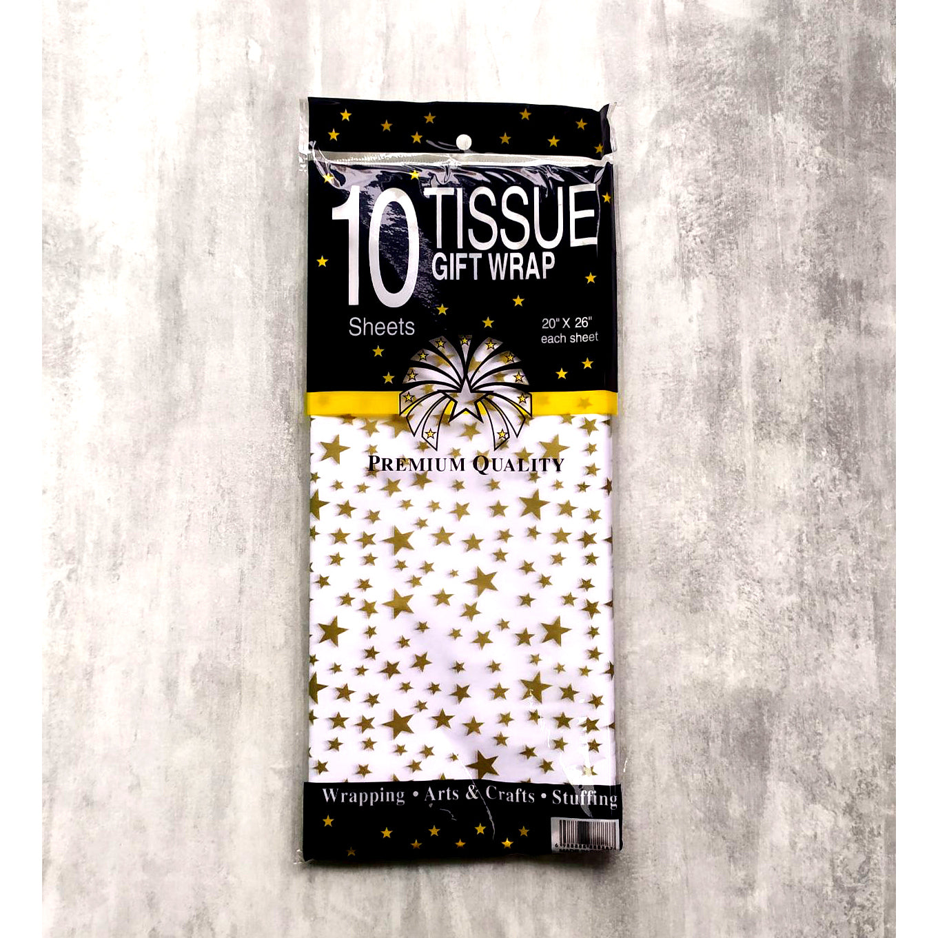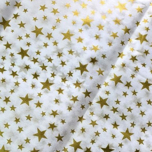 Papier dekoracyjny (tissue paper) z delikatnym wzorem złotych gwiazdek do stylowego pakowania.