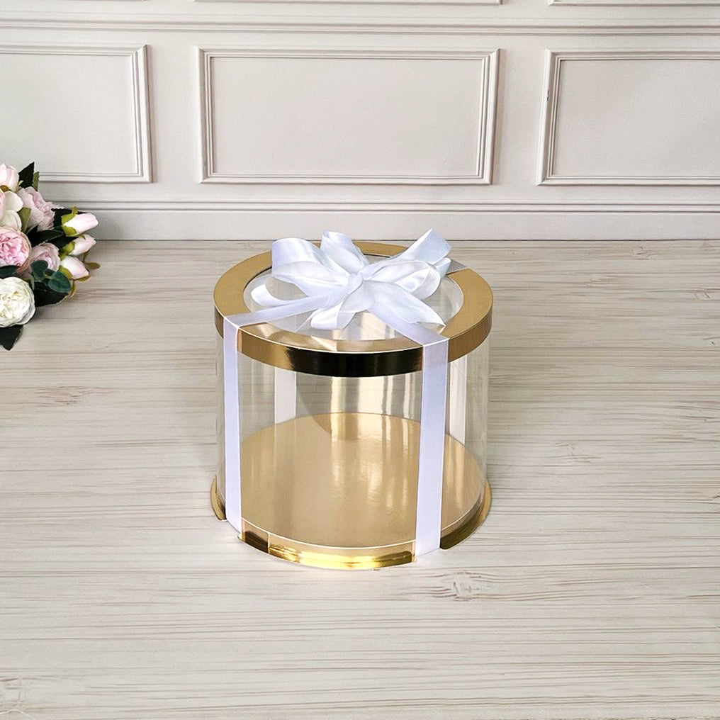 Przezroczyste okrągłe pudełko na tort 20x20 cm – Złoto, z okienkiem