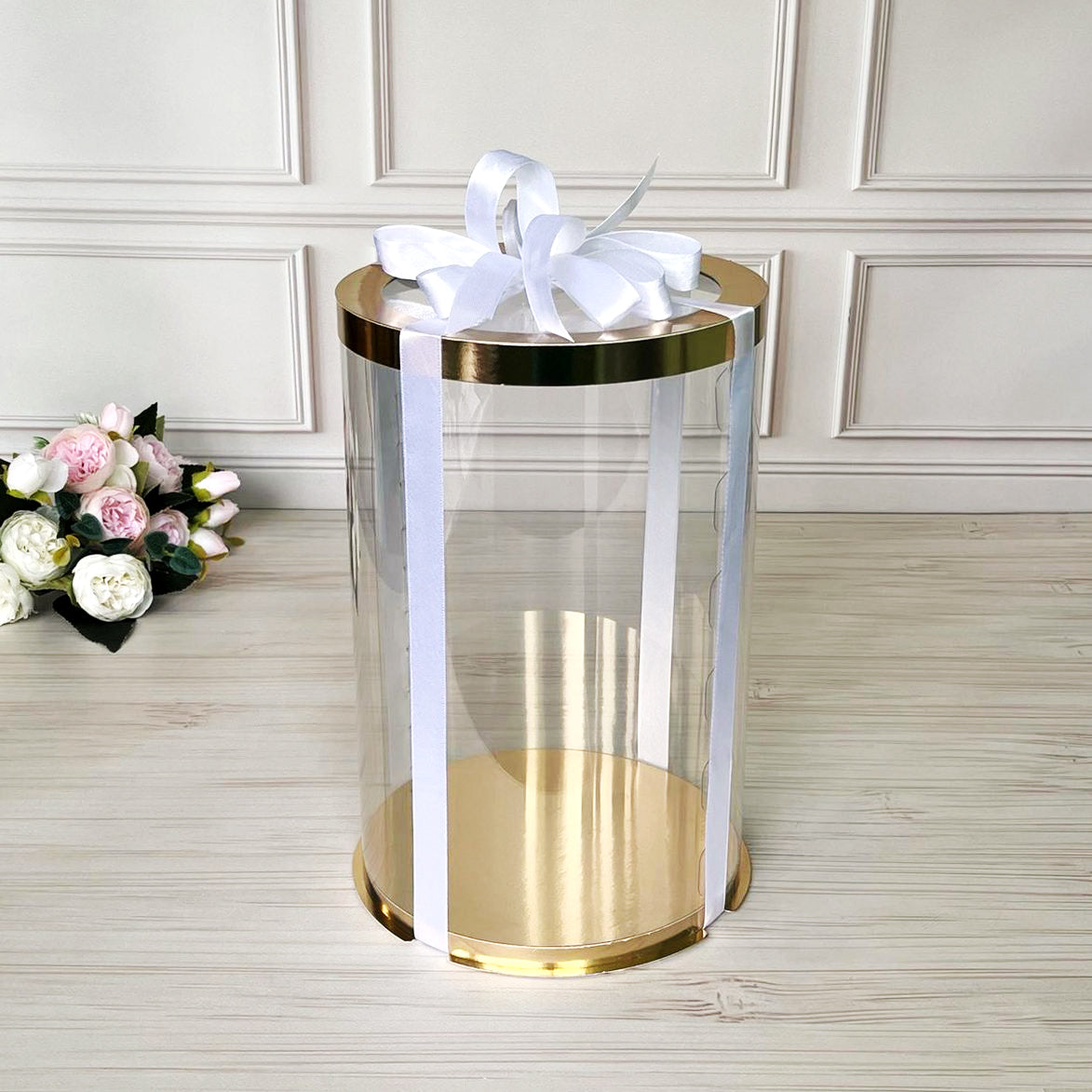 Przezroczyste okrągłe pudełko na tort 20x30 cm – Złoto, z okienkiem