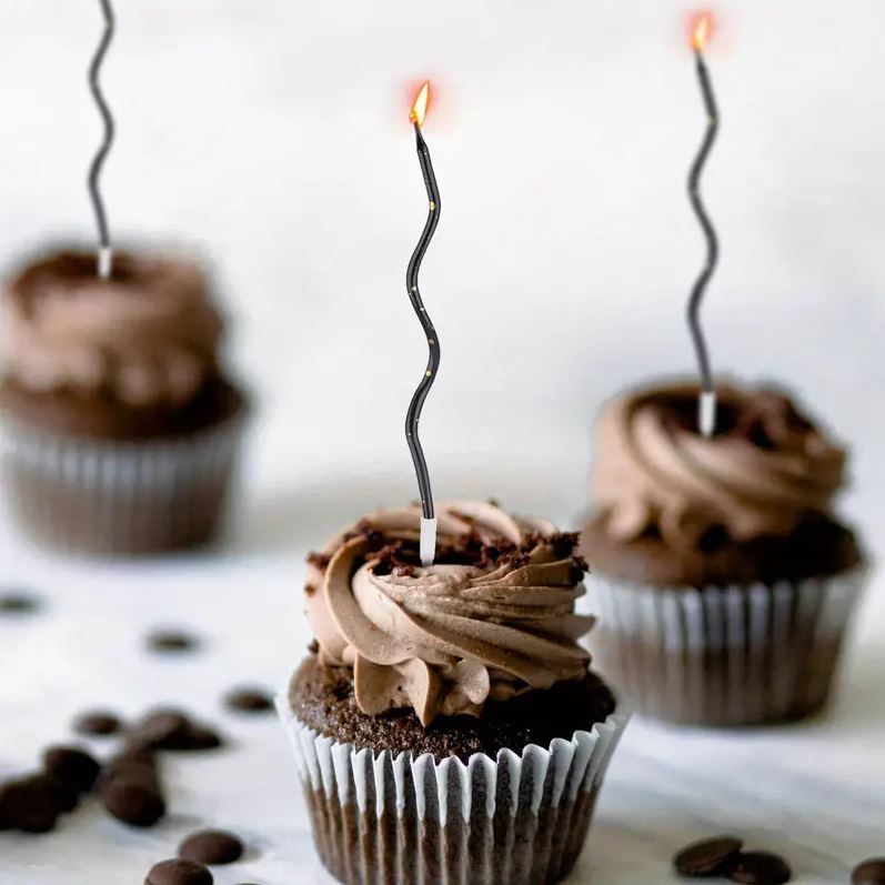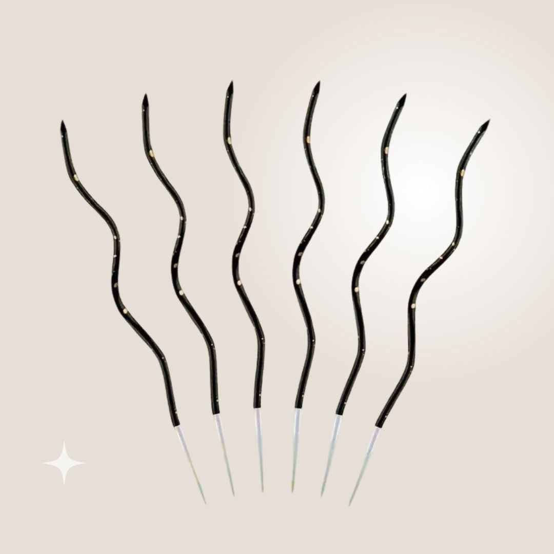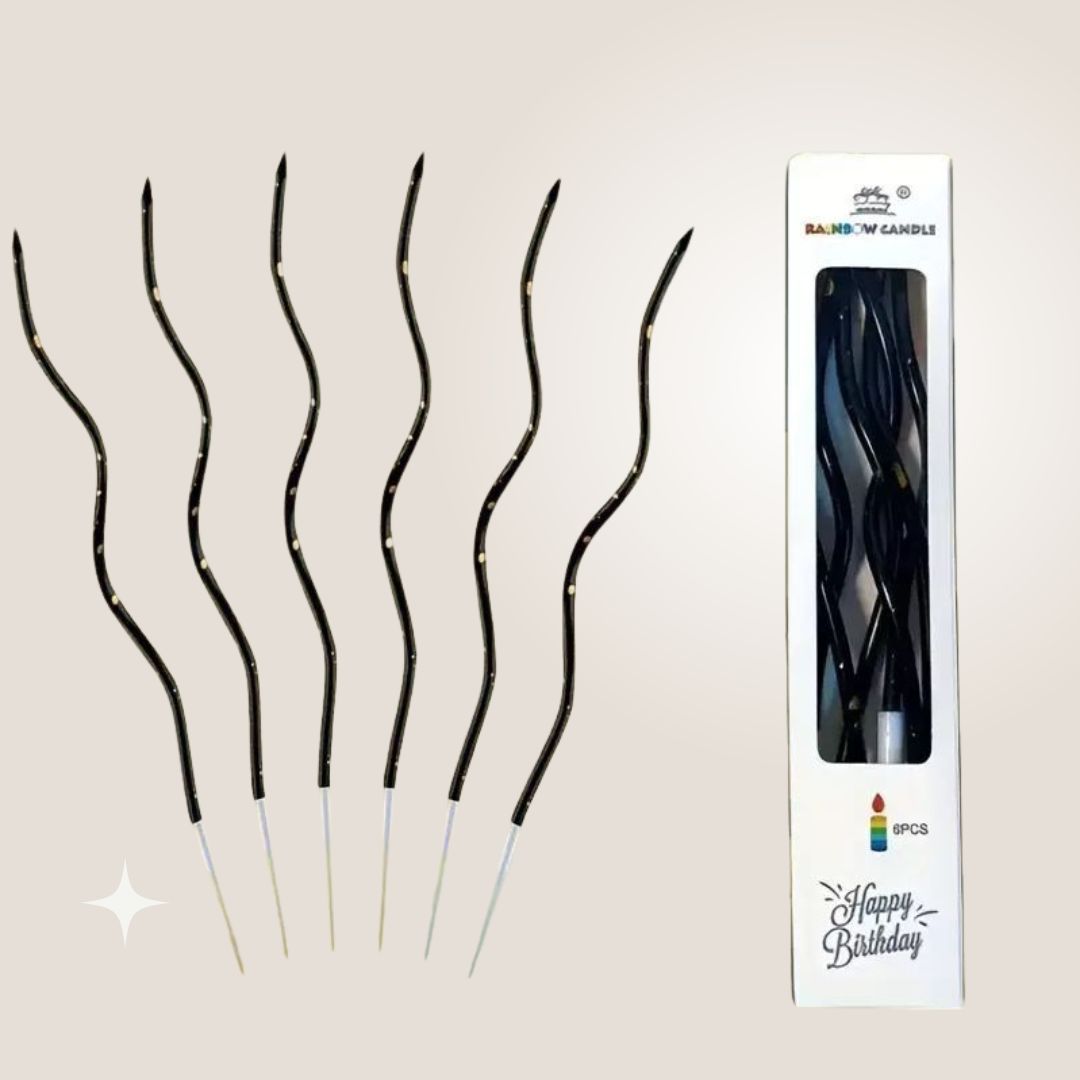 Zakręcone świeczki urodzinowe, Czerń ze złotem, 11 cm - 6 szt.